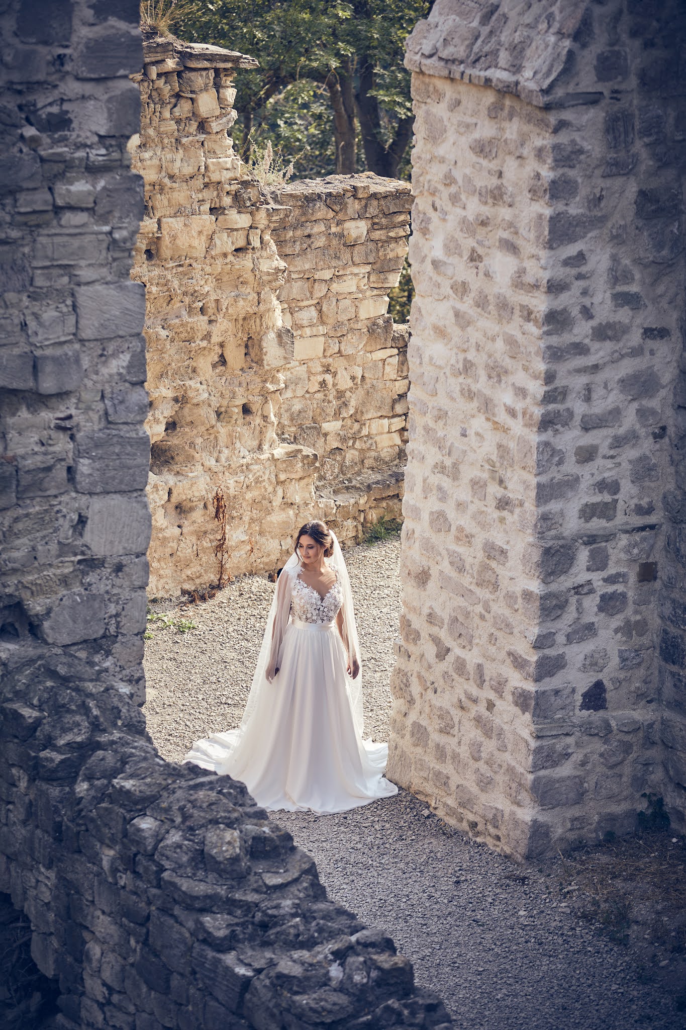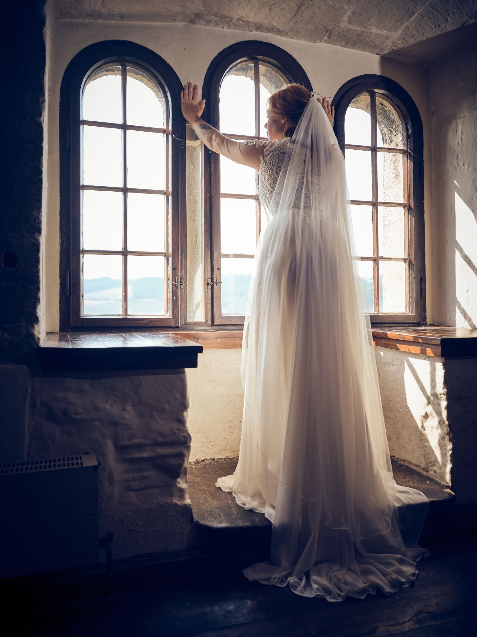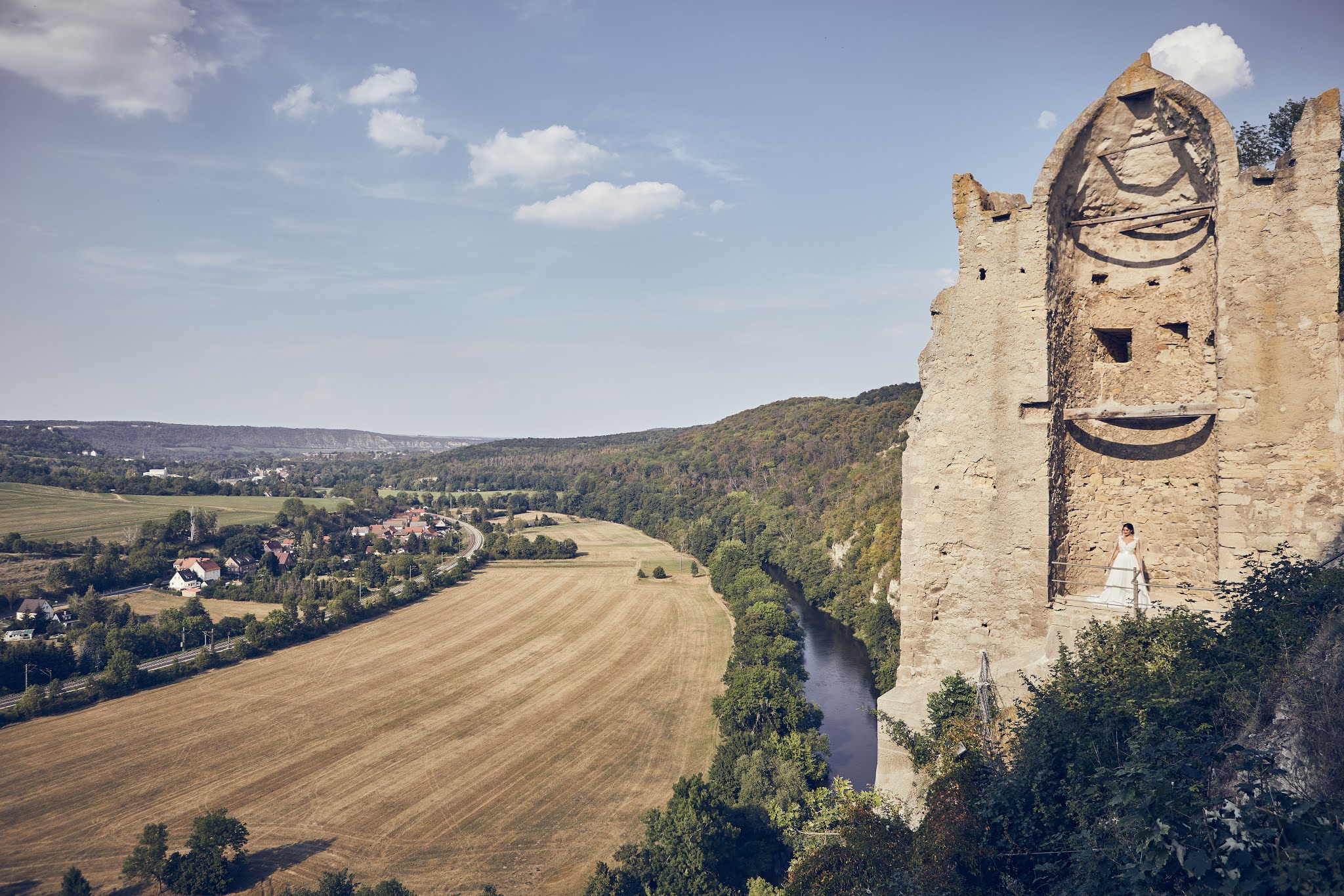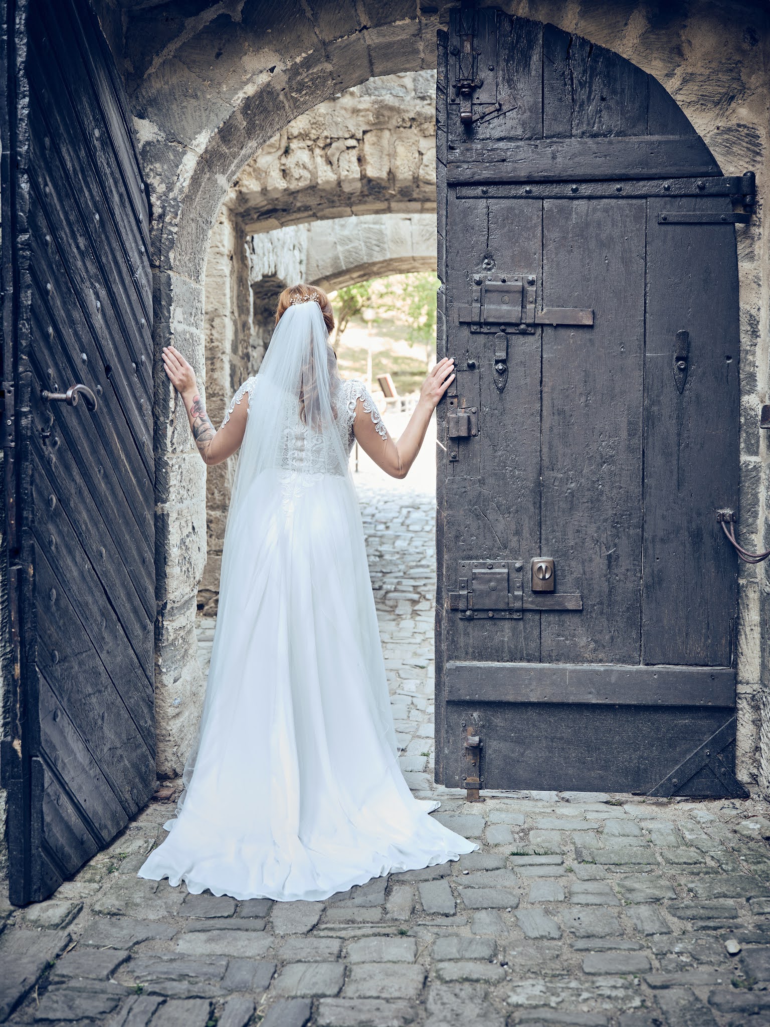Einmal Prinzessin sein, Herrin der Burg, zu Füßen die malerische Landschaft von Sachsen-Anhalt, ein traumhaftes Brautkleid mit Schleppe, Spitze und Schleier – und als Kontrast dazu die geschichtsträchtigen, alten Burgmauern. Einfach märchenhaft.