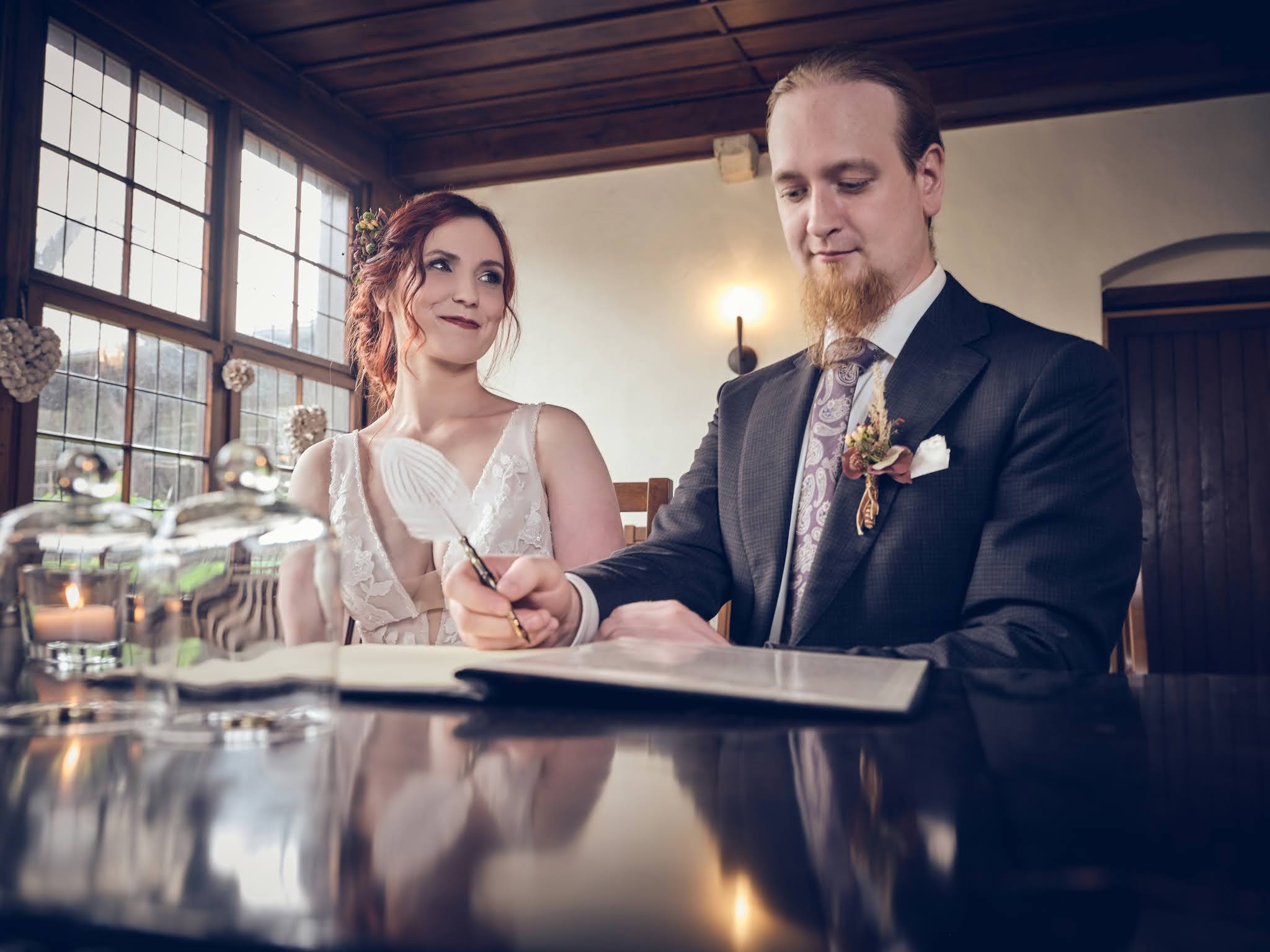 Die Rudelsburg hat eine Besonderheit: Das Standesamt der Stadt Naumburg unterhält hier ein Trauzimmer, so dass direkt auf der Burg auch standesamtliche Trauungen möglich sind. So kann der „offizielle Teil“, der ja manchmal nur als Pflichterfüllung angesehen wird, auch in dem wunderbaren, historischen Rahmen stattfinden.
