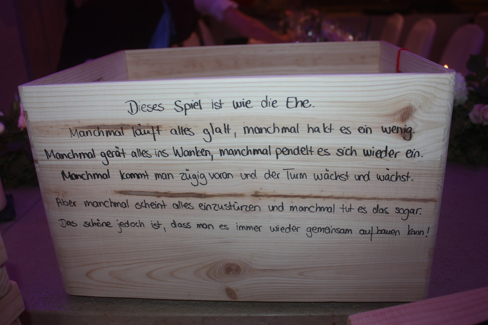So gab es noch viele zauberhafte Details zu entdecken, Die Agentur Glückskonzepte hatte in einer Weinkiste Zeitablaufpläne deponiert, kleine Wundertüten für die Kinder vorbereitet und Süßigkeiten aufgestellt.