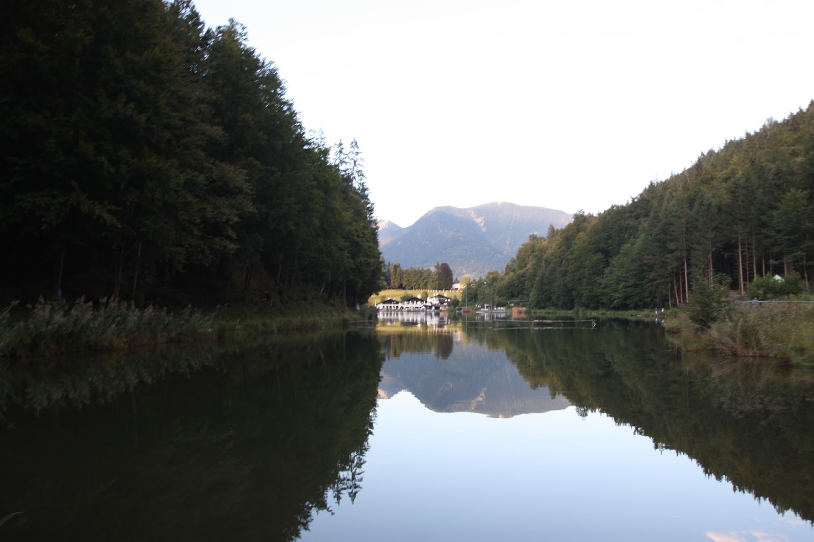 Und während vor der Bobkantine die Feuerschalen angezündet wurden und die bereit gelegten Fleece- und Kuscheldecken ausgerollt wurden, fuhr ich mit dem Golfcart zurück zum Hotel. Ein letzter Blick über den abendlichen See, der sich gelohnt hat.