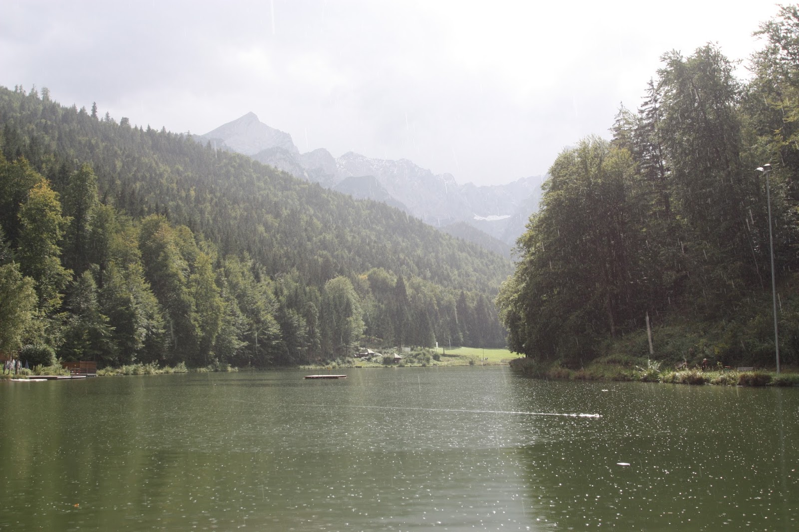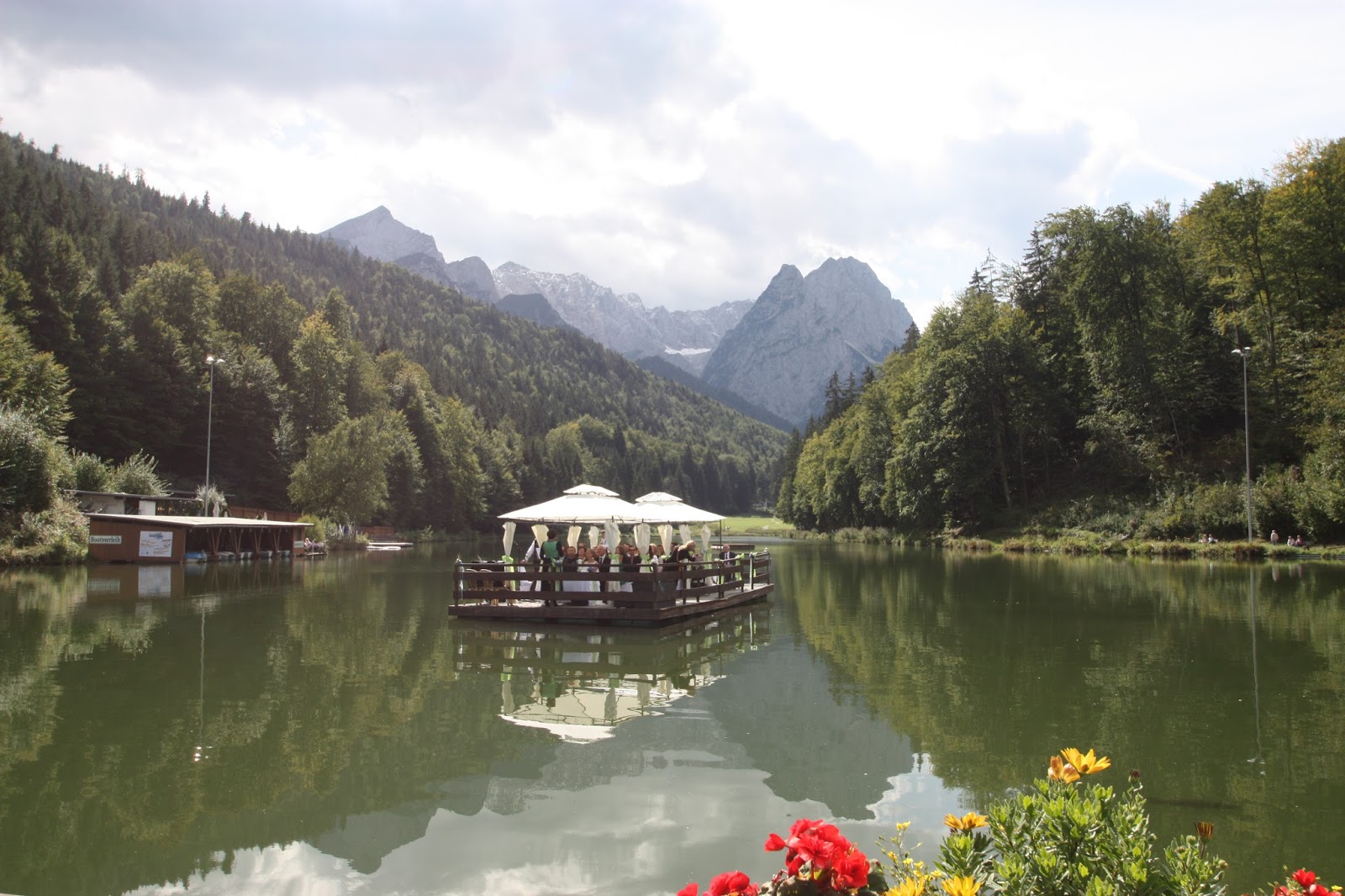 Der Septembermorgen präsentierte sich strahlend mit dem ersten Schnee im Wetterstein und einem perfekten Spiegelung im See – beste Aussichten auf eine Traumhochzeit.