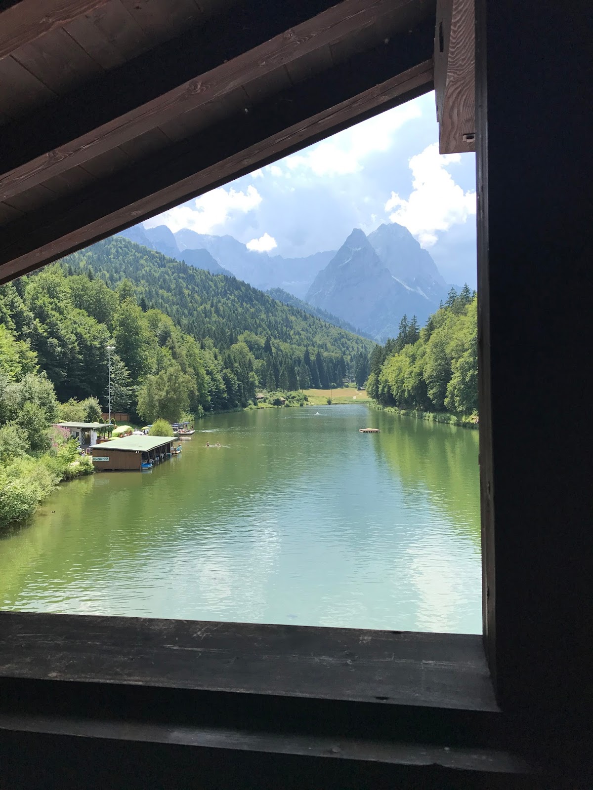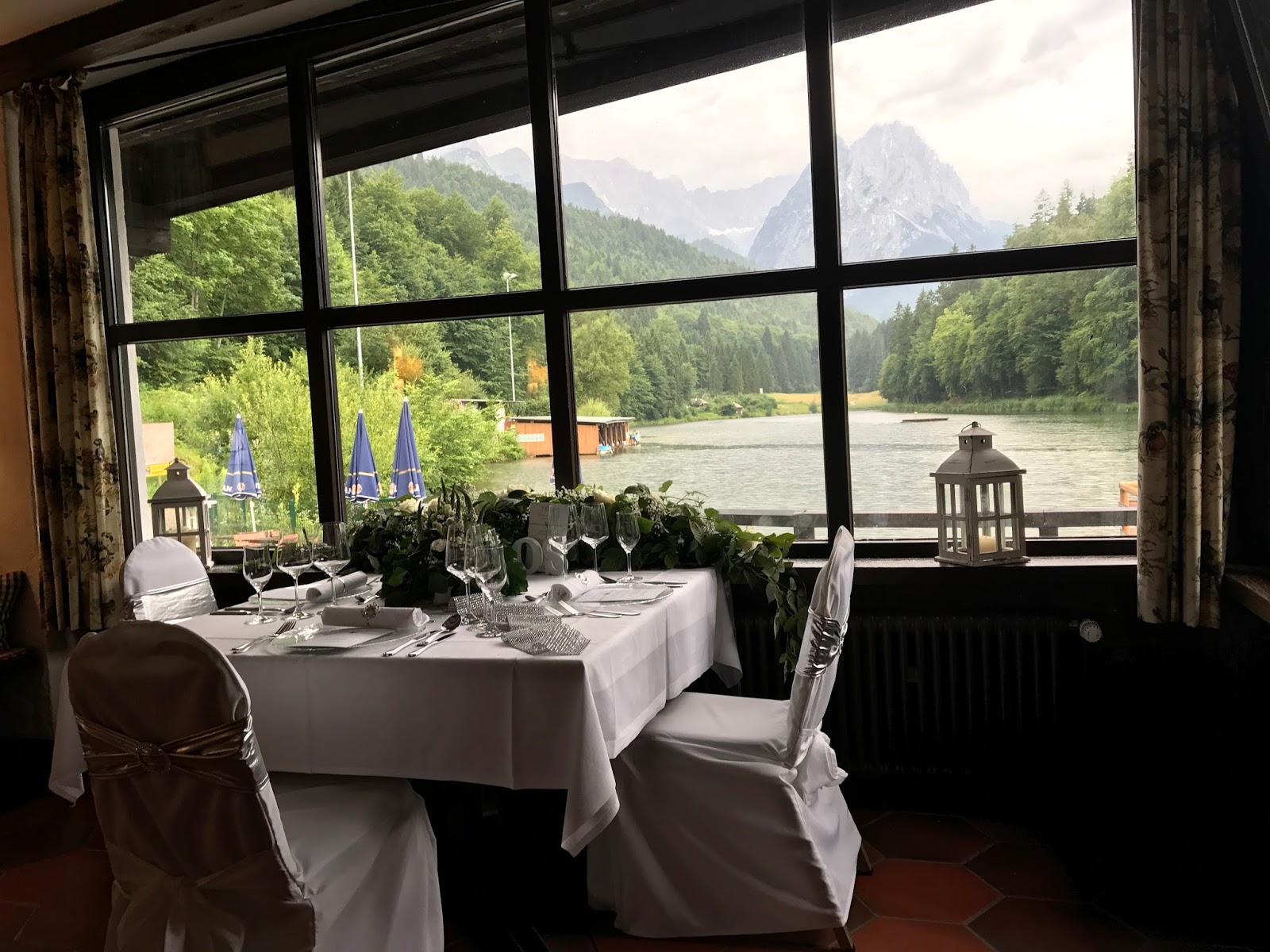 Leider konnte das Abendessen dann wegen eines aufziehenden Gewitters wie geplant auf dem kleinen Floss stattfinden, aber im Jagdstüberl im Seehaus fand sich eine schöne Alternative in ganz privatem Rahmen mit herrlichem Bergblick.