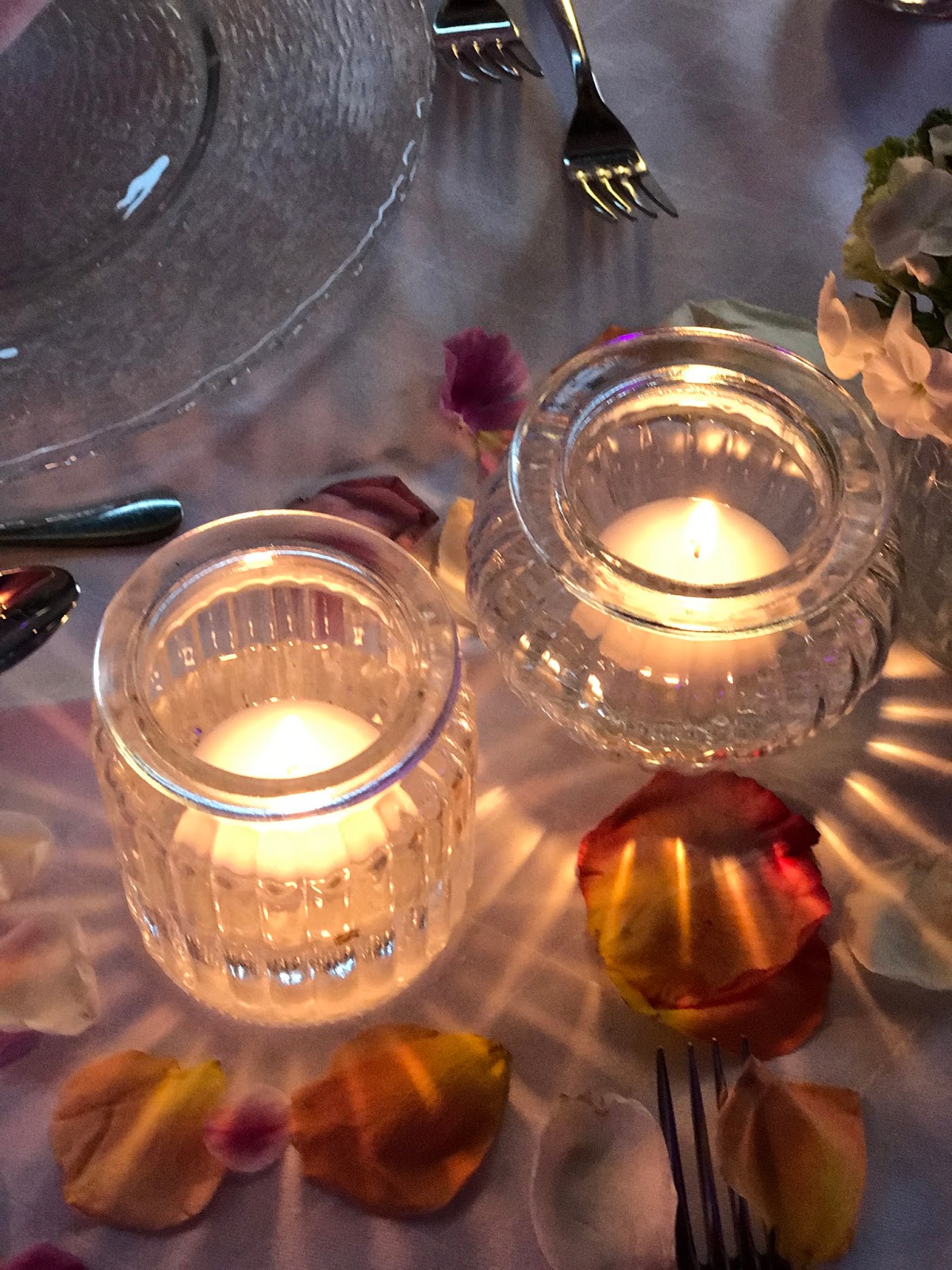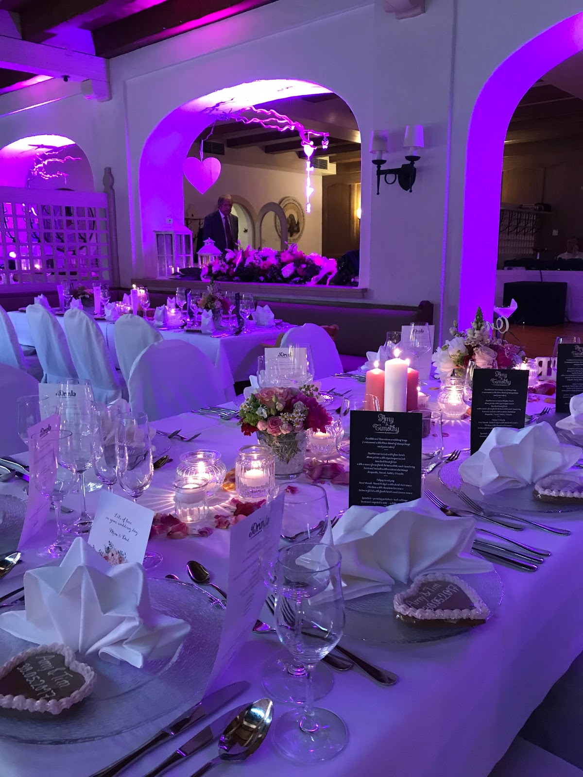 A special gift for the bride and groom were engraved glasses from the parents and we added them to the table set-up on the couples place.