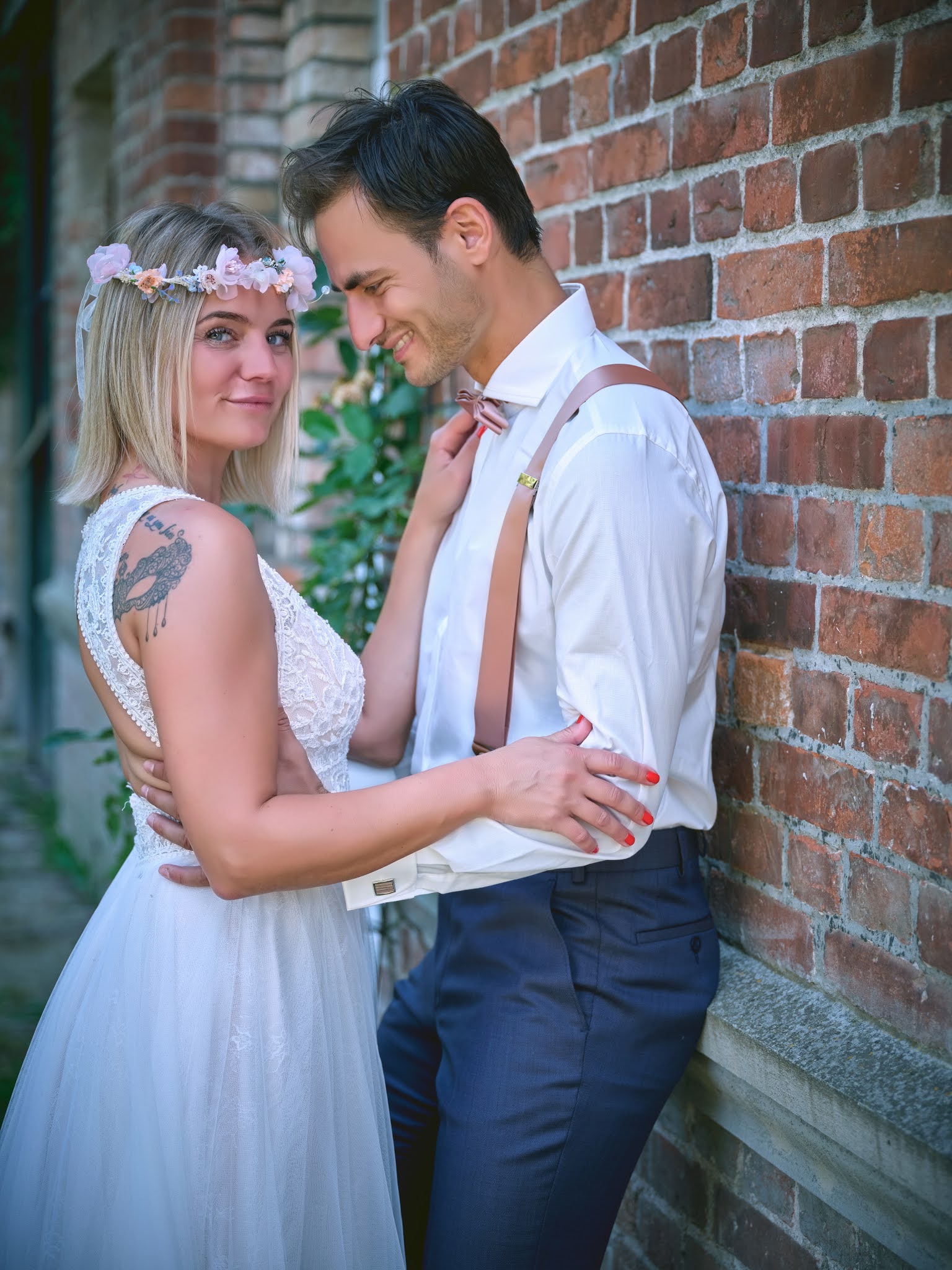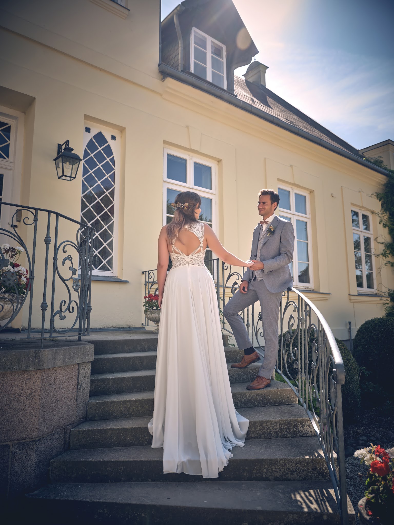 Und dann ging es los mit dem Paar-Shooting von Vero und Florian am malerischen Gutshaus der Ferienanlage: