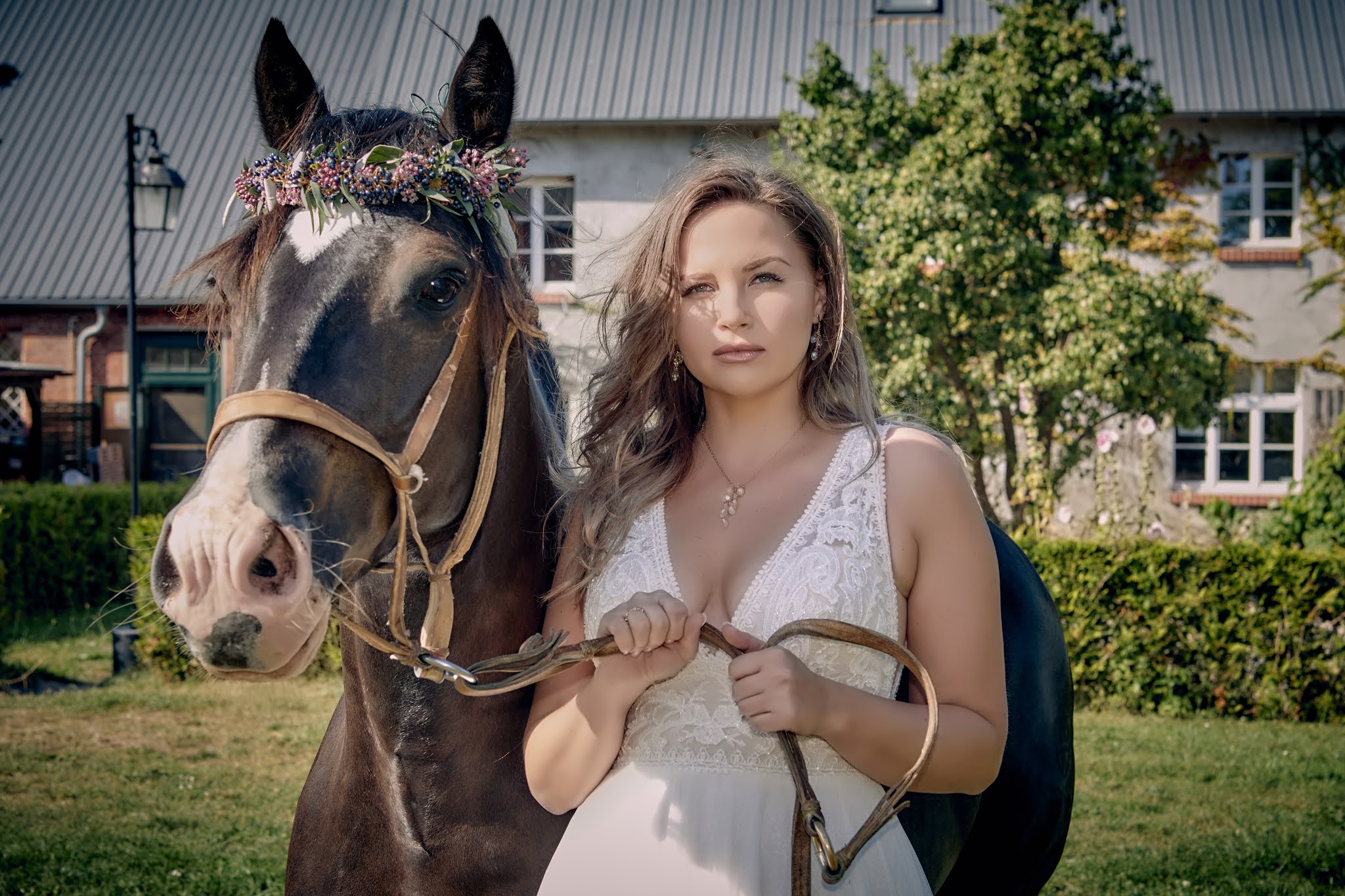 Und natürlich durften bei unserem Shooting generell die Pferde nicht fehlen, schließlich ist Gut Dalwitz auch ein Reiterhof, wo die „Mecklenburger Gauchos“ wohnen und der berühmt ist für seine Criollo-Zucht. Also auch ein Ort, wo „Pferdemädchen“ heiraten können.