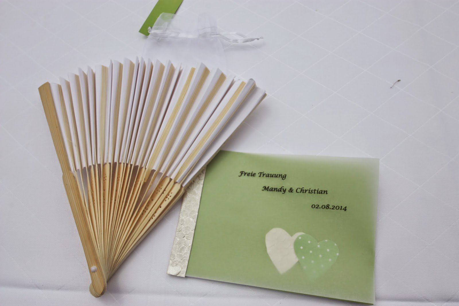 | Sommer-Hochzeit – Fächer für die Gäste und handgefertige Programmhefte |