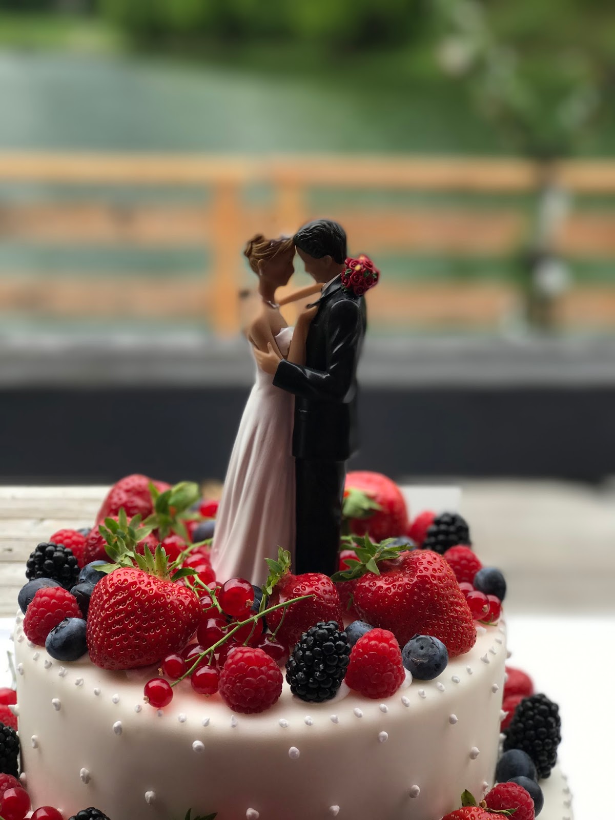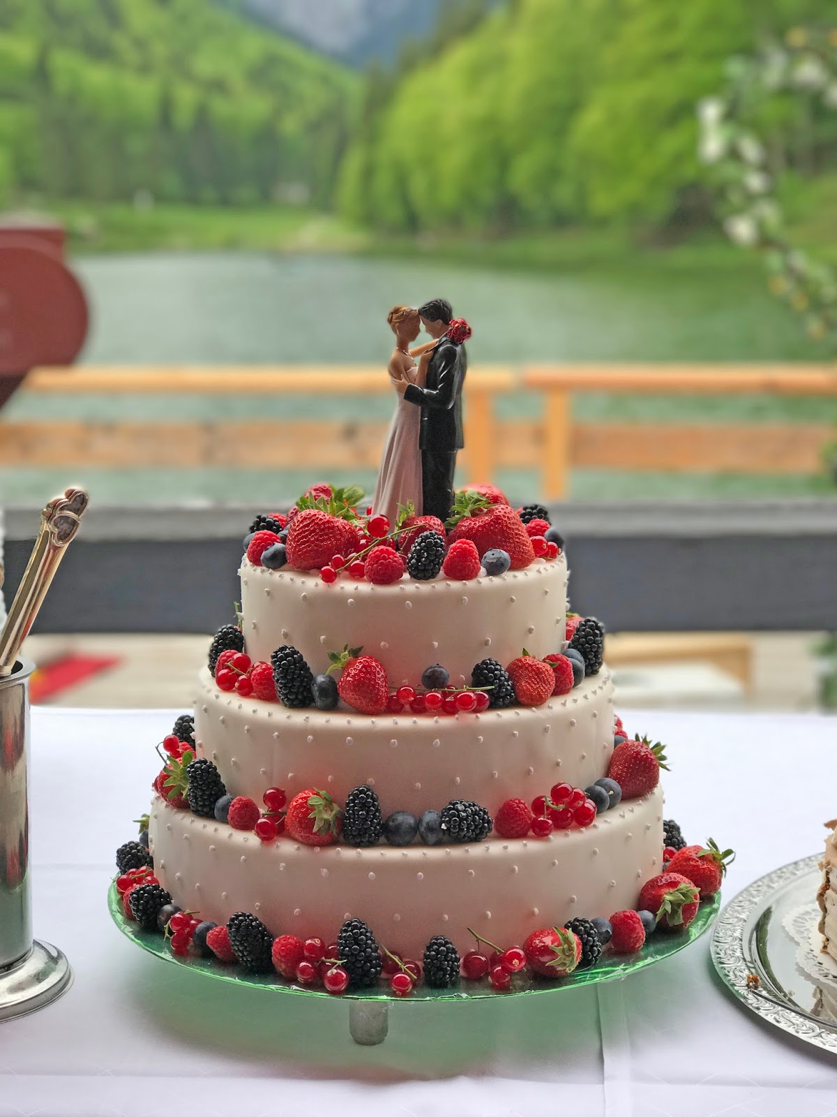 Die Hochzeitstorte von der Konditorei Krönner in Garmisch-Partenkirchen war sommerlich-fruchtig und üppig mit frischen Beeren dekoriert, dazu gab es noch verschiedene Blechkuchen frisch vom Bäcker.
