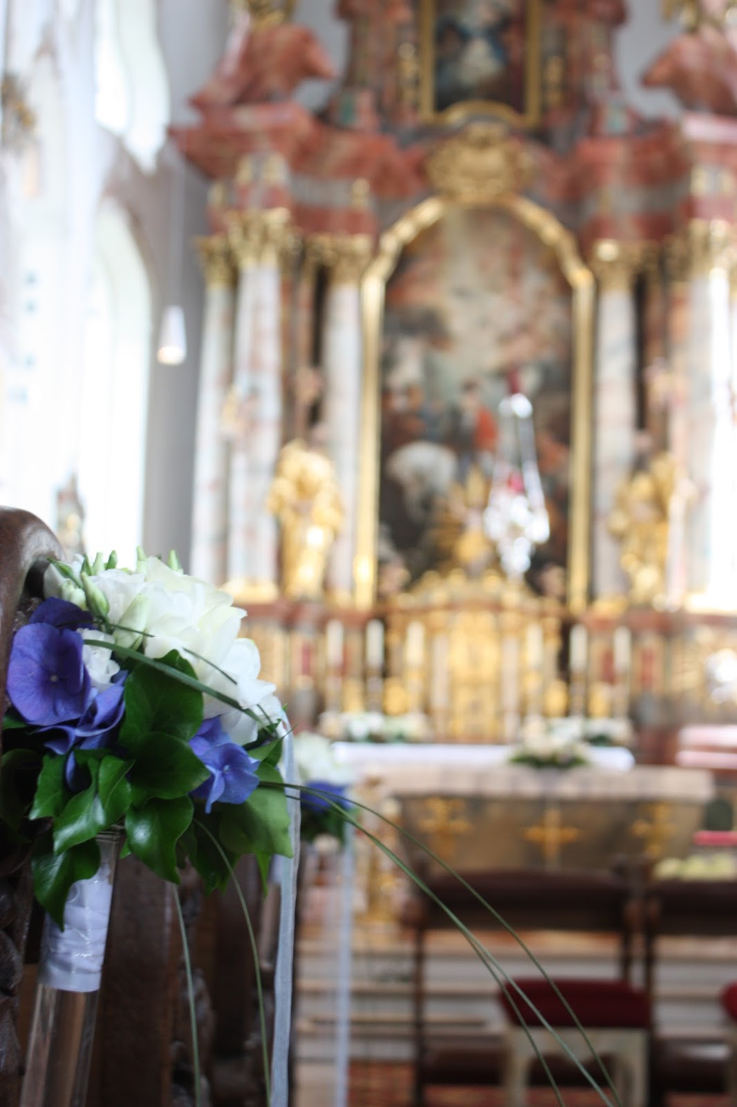 Der erste „Tagesordnungspunkt“ war dann die katholische Trauung in der Pfarrkirche St. Martin in Garmisch, die von Passiflori Blumen Penzberg liebevoll in den Hochzeitsfarben geschmückt wurde.