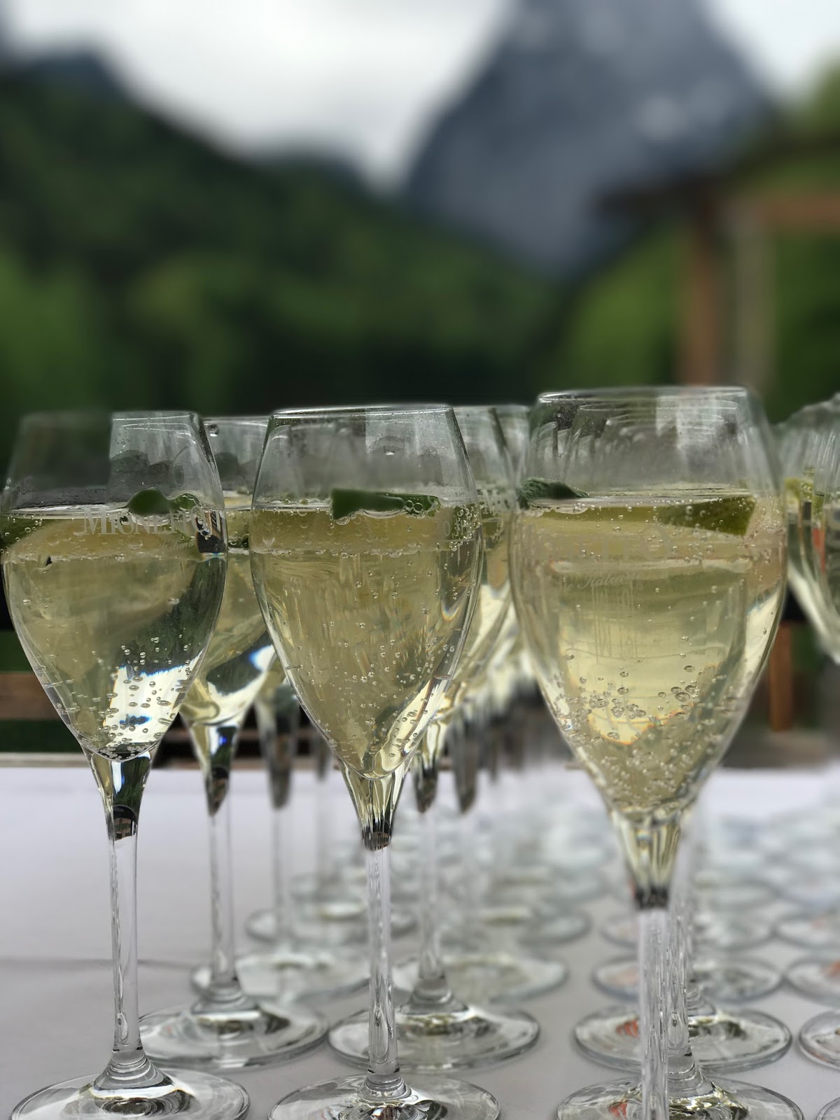 Nach der Kirche gab es zum Anstossen auf der festlich gedeckten Seeterrasse erst einmal Prosecco, Hugo, Sprizz und Alkoholfreies.