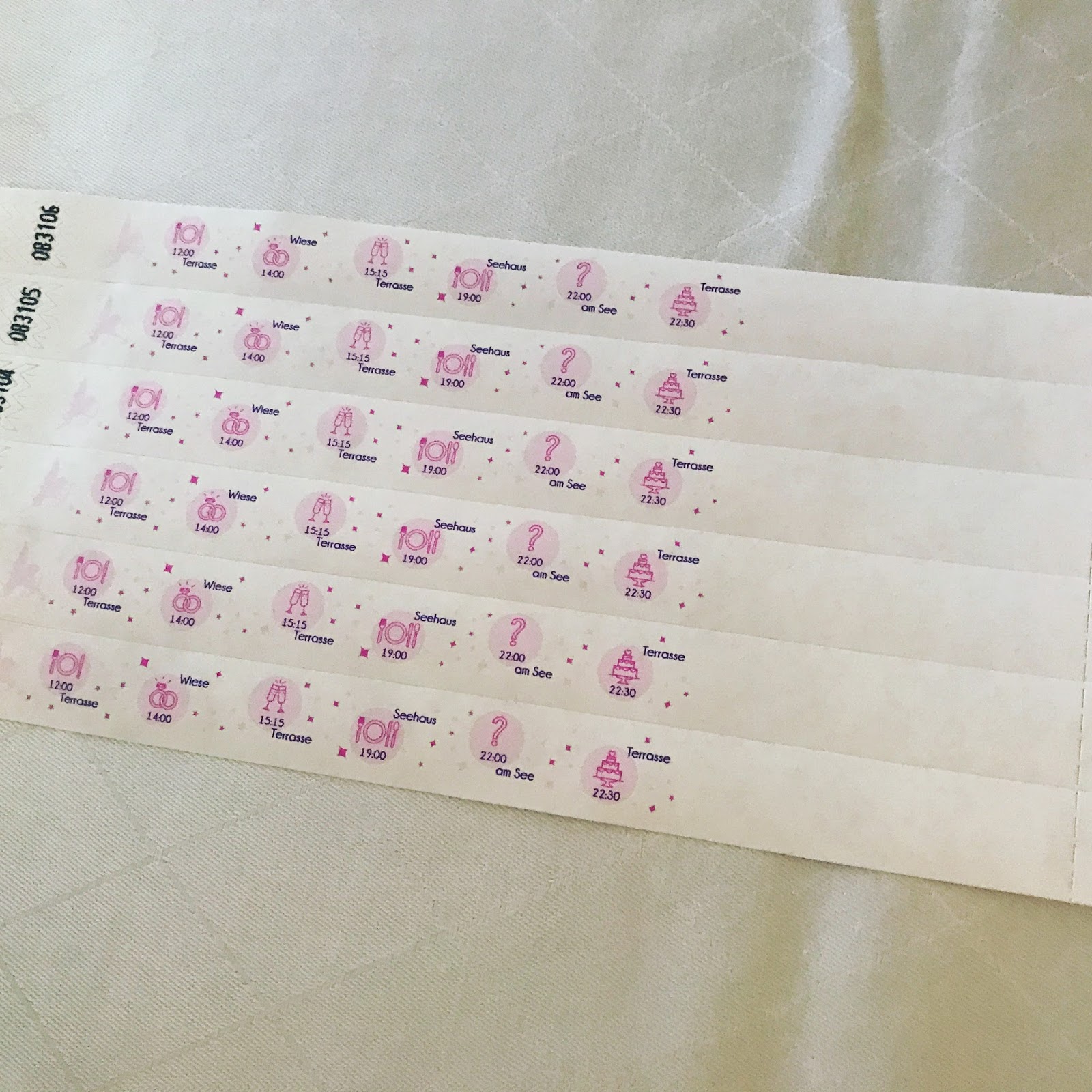 Weiße und pinke Schwimmkerzen in Stielgläsern und roséfarbene Blütenblätter ergänzten das Tischdekorationssschema und für den Tischplan Fotopostkarten mit Flughafenkürzeln mitgebracht.