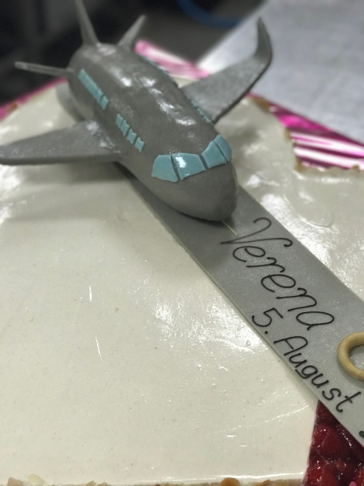 Und dann kam noch die Hochzeitstorte! Ein riesiges Doppelherz von der Konditorei Krönner Garmisch-Partenkirchen auf pinkfarbener Platte mit einer Landebahn und natürlich einem großen Ferienflieger für die Reise auf rosa Wölkchen ins Eheglück…