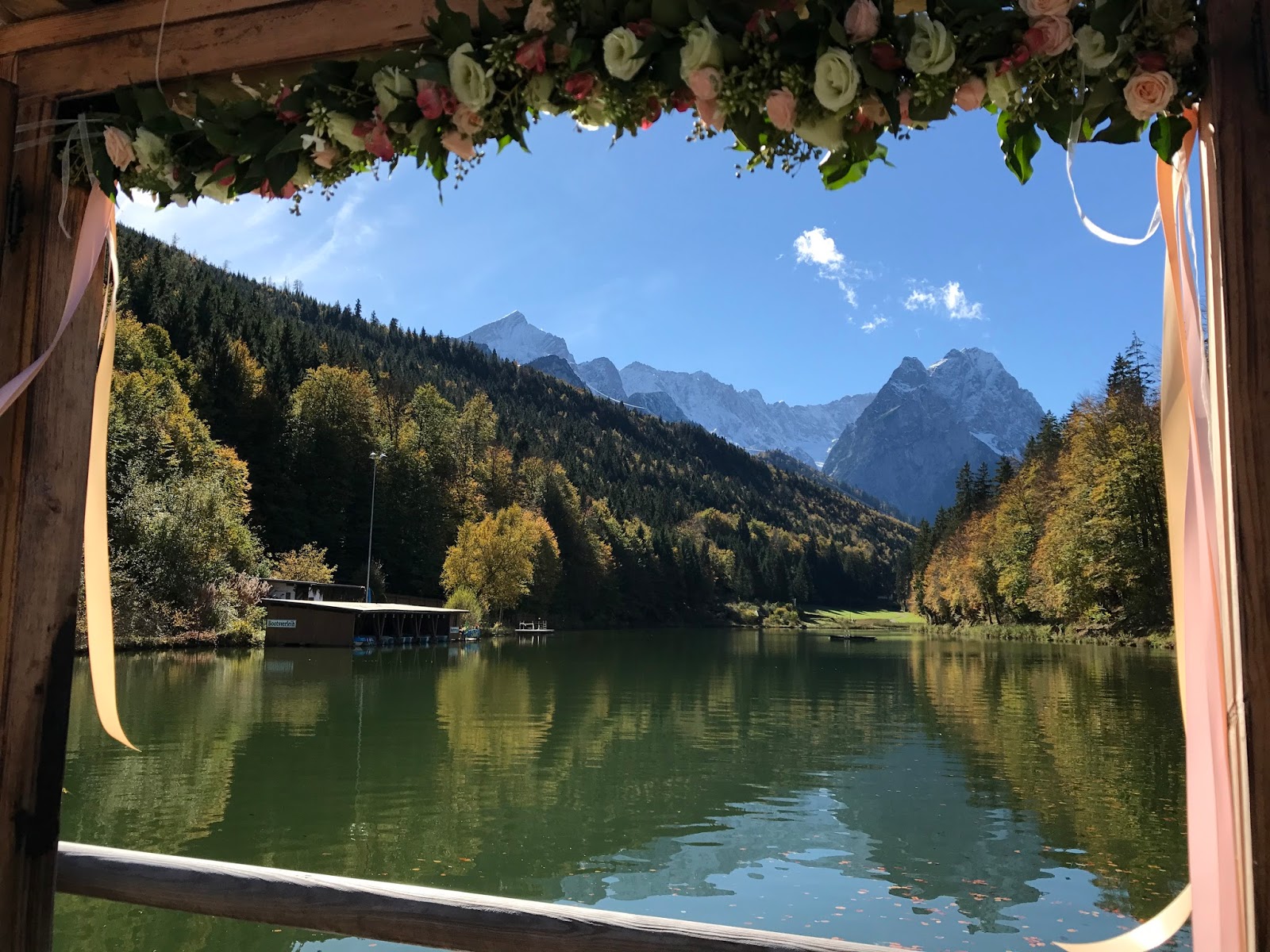 Da es trotz Herbstsonne schon etwas kühl war, entschloss man sich, das Kaffee trinken ins Seehaus zu verlegen – das Bergpanorama mit Alpspitze und Waxensteinen war dort mindestens genauso einmalig schön wie draußen auf der Terrasse.