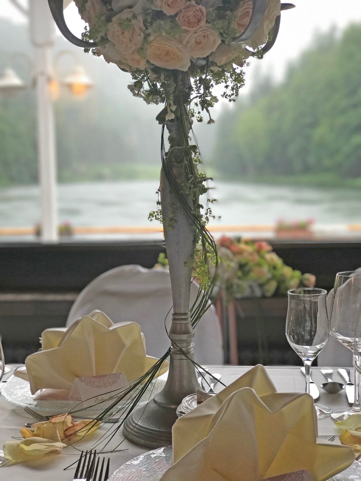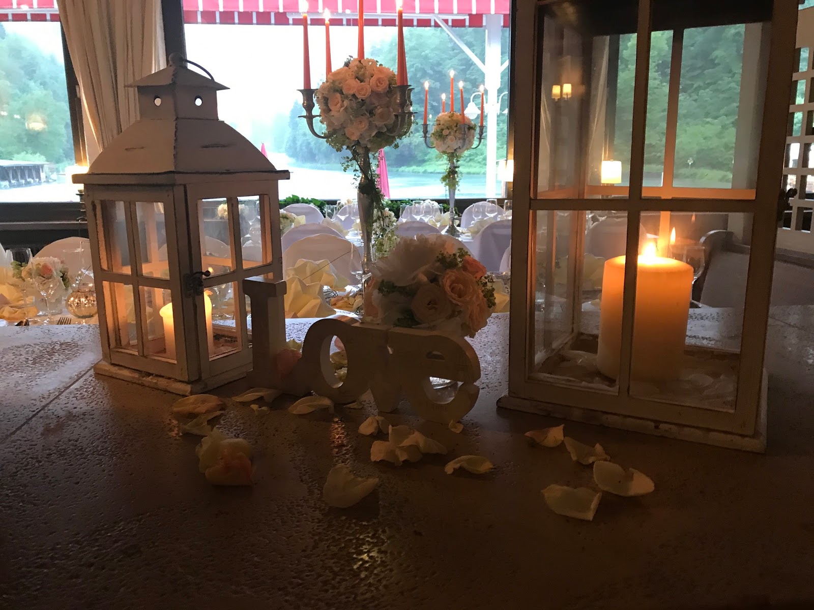 Das Hochzeitsabendessen fand dann im Seerestaurant statt. Der Blick auf den wolkenverhangenen See hatte etwas melancholisch-romantisches und drinnen sorgten wir mit warmem Kerzenschein für eine gemütliche Atmosphäre.