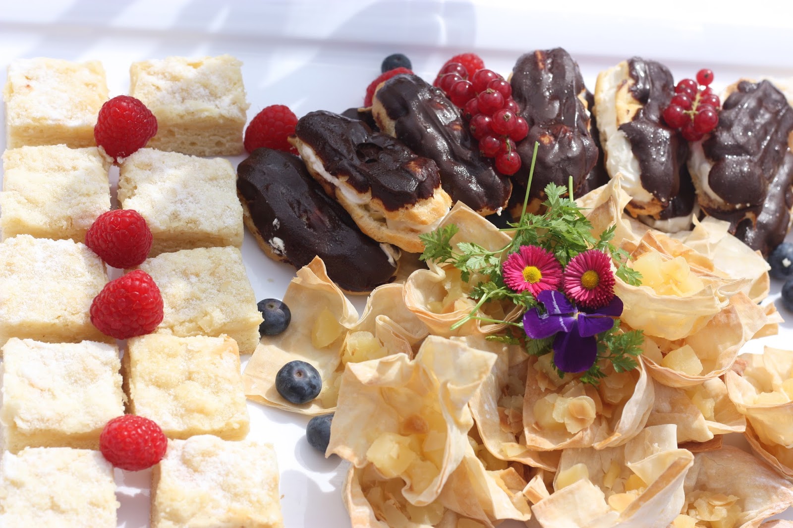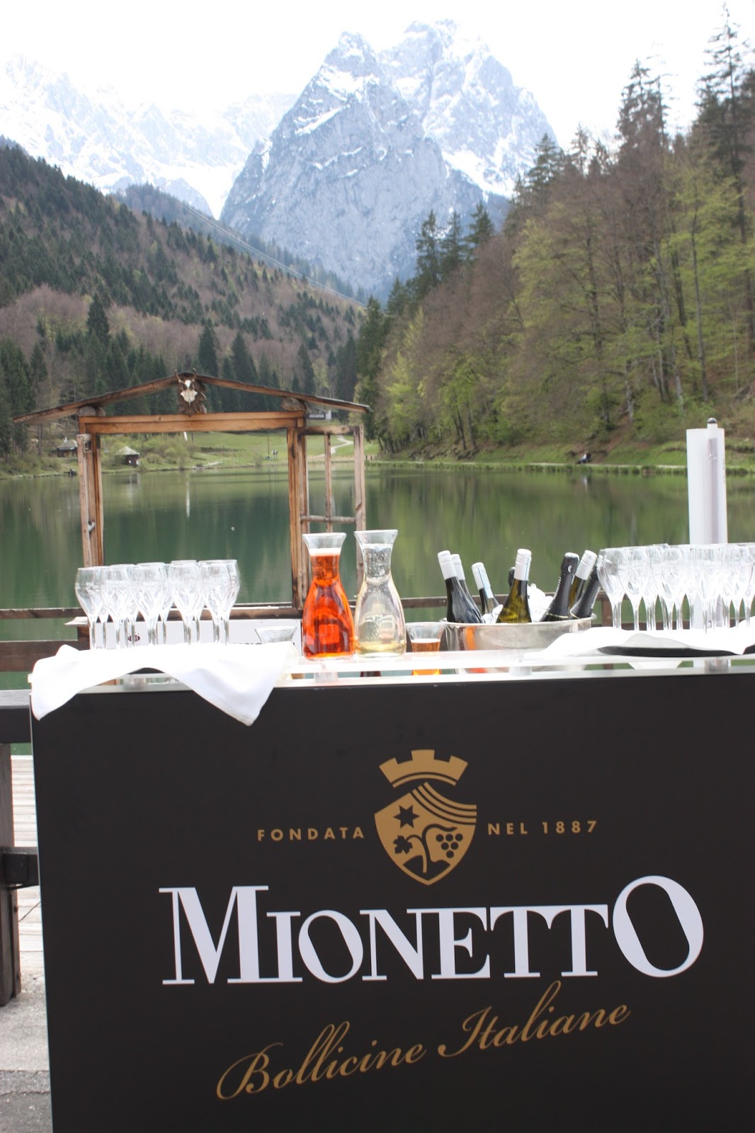 Nach der Trauung gab es zur Stärkung auf der Seeterrasse erst einmal Prosecco, Sprizz, Hugo und alkoholfreie Getränke an der Mionetto-Bar, dazu süßes und pikantes Fingerfood wie Grissini mit feinem Schinken, Caprese-Spießchen, Brezen mit Obazda und Butter, Kartoffelsalat im Gläschen mit kleinen Schnitzeln und Gebäck aus der hauseigenen Patisserie.